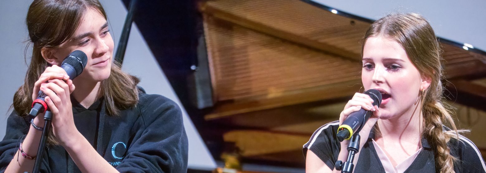 The new series of Music at Lunchtime recitals started last Friday with two Year 11 students – Maya H-B and Amy P. They sang a mix of song covers and original compositions by Amy. The recital started with Amy singing her song, ‘Stayed Away’ accompanying herself on the piano. Maya then sang Aretha Franklin’s ‘Natural Woman’ and they both sang Amy Winehouse’s ‘Valerie’ as a duet. Amy was then in the spotlight with her guitar as she sang two of her songs, ‘Princess’ and ‘November’. It was then Maya’s turn to cover ‘Love on the brain’ before Amy finished the recital with her composition, ‘Three Months’. These are two young singers with outstanding voices. Throughout the recital the characterisation, musicianship and singing that we witnessed was nothing less than superb. Amy is a fine song composer with a bright future and we look forward to hearing more of her songs in the future. You really needed to be there to fully appreciate the recital, but you can hear it in full on Soundcloud.