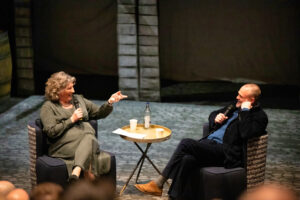 In a conversation that was mostly Allied-centric it was important to acknowledge the German experience of war. Murray contrasted the ‘steel before flesh’ approach of the Allies, which prioritised the use of technology rather than soldiers, with the ‘meatgrinder’ of the Axis powers, sending streams of seemingly expendable infantry into battle. This led to an increasingly desperate defence as the war ground to an end and, as one of our Sixth Form students, Winnie, pointed out in her insightful question, the fact that Germany was rebuilt by her conquerors is an outcome perhaps unique in the history of war.